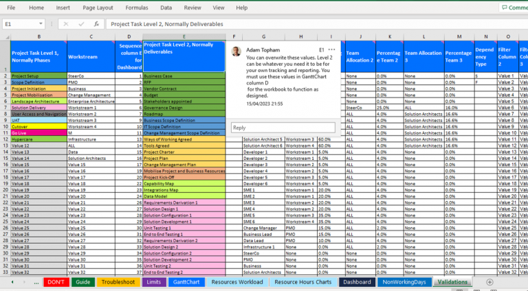 - Throughout the workbook there are copious guidance notes at your fingertips to tell you or remind you what a column is for and how to use it.