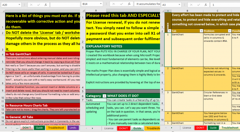There’s a ‘Guide’ tab with comprehensive instructions about how to use Proper Plan, even a recommendation about the sequence in which you should execute the various steps.